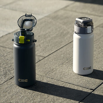 希乐保温杯316不锈钢高颜值男女士户外健身运动双饮弹跳杯雪球白600ml