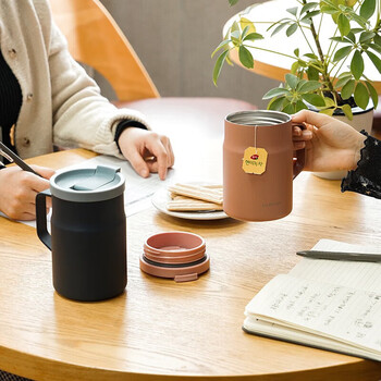 乐扣乐扣(LOCK&LOCK)遇见惬意保温保冷咖啡杯带手柄男女水杯子370ML粉色LHC4262PIK