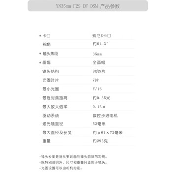 永诺YN35mm F2S索尼口广角定焦镜头自动模式大光圈人像街拍