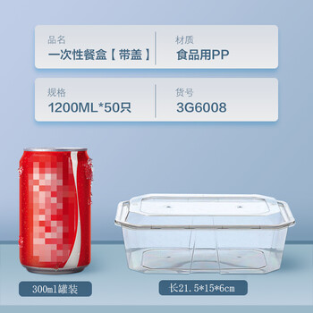 芳草地 一次性饭盒 1200ML带盖加厚打包盒*50个