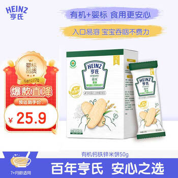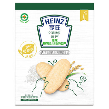 亨氏(Heinz)有机婴幼儿钙铁锌原味米饼宝宝零食辅食6个月以上独立小包装50g