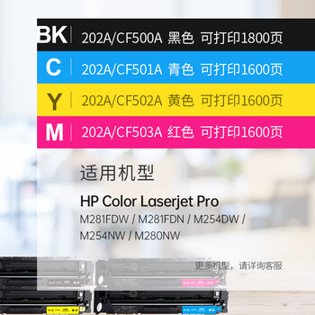 格之格202a硒鼓适用惠普m281fdw硒鼓hp m254dw m254nw m281fdn m280nw打印机墨粉盒带芯片四色套装cf500a硒鼓