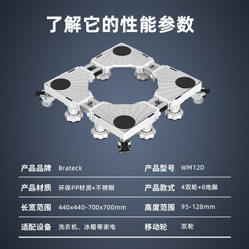 Brateck北弧 洗衣机底座 冰箱底座架 洗衣机支架滚筒洗衣机托架移动架垫高架子海尔小天鹅西门子美的WM12D