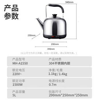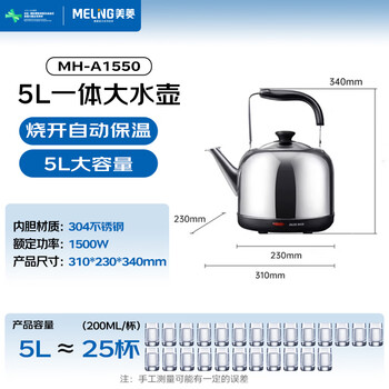 美菱(MeiLing)电水壶电热水壶304不锈钢烧水壶5L大容量热水壶MH-A1550