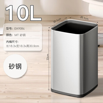 EKO无盖垃圾桶10L砂钢家用大号厨房卫生间不锈钢纸篓张若昀推荐9084