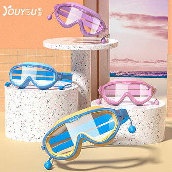 佑游儿童泳镜泳帽防水防雾大框男女游泳馆洗澡泳镜六件套6936紫色