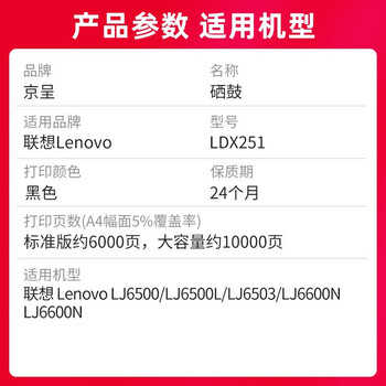 京呈适用联想硒鼓LJ6503墨盒LJ6500碳粉LJ6500N墨粉盒LJ6600N粉盒 【6000页】LDX251 标准黑色再生硒鼓