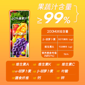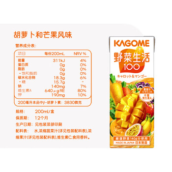 可果美(KAGOME)日本进口 野菜生活果蔬汁 芒果味蔬菜饮料儿童果汁200ml*12盒整箱