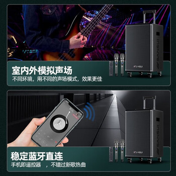 山水(SANSUI)广场舞拉杆音响专业设备户外k歌演出移动便携智能大功率重低音带无线话筒E12电木吉他民谣乐器音箱