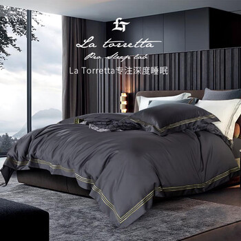 La Torretta120支长绒棉四件套纯棉四季高档床上全棉被套床单黑灰1.8/1.5米床