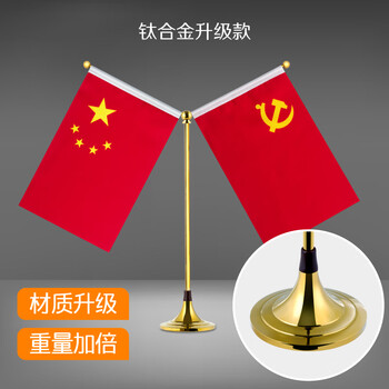 优和(UHOO)国庆节党旗国旗摆件办公室桌面会议室桌旗中国小国旗小红旗带底座五星红旗帜 钛合金Y型0277