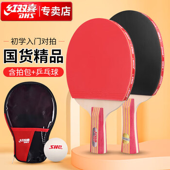 红双喜横直对拍乒乓球拍横直套装2拍1球Ⅱ型
