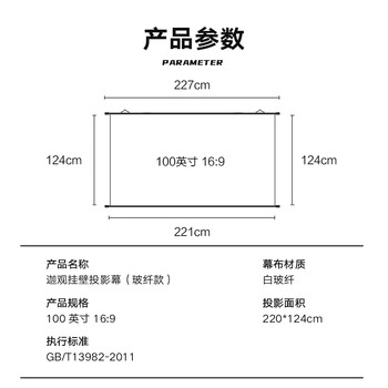 迦观100英寸16:9玻纤挂壁幕布 壁挂幕布 家用投影仪幕布 投影机幕布 商务会议幕布 极米坚果爱普生幕布