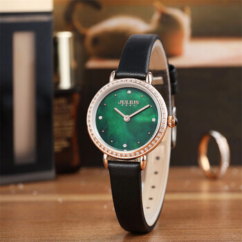 聚利时(Julius)手表女韩版时尚镶钻小绿表百搭防水学生女士手表黑带绿盘JA-1279B