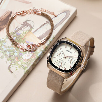 聚利时(Julius)手表女礼盒多功能六针气质防水石英女士学生手表卡其色MGSL-1443A