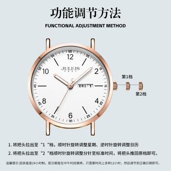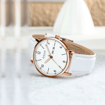 聚利时(Julius)手表女新款初中高中生中学生女生考试日历石英手表白色JA-1516LB