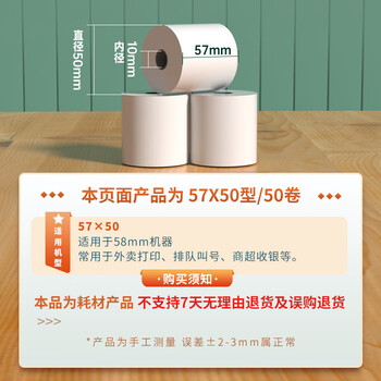 57mm*50mm热敏收银纸×50卷/箱,20米/卷