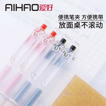 爱好(AIHAO)【开学必备】按动中性笔0.5mm子弹头大容量速干商务办公签字笔红色12支 x97