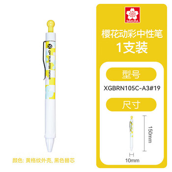 樱花 动彩按动中性笔 0.5mm 黑芯黄格杆*1