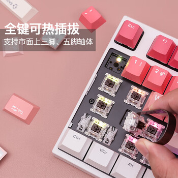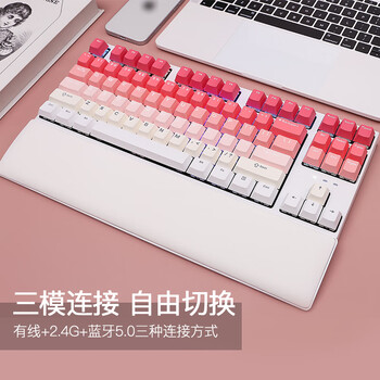 迪摩(DEARMO)F87机械键盘三模热插拔客制化键盘RGB背光游戏键盘笔记本电脑办公键盘 渐变粉 红轴