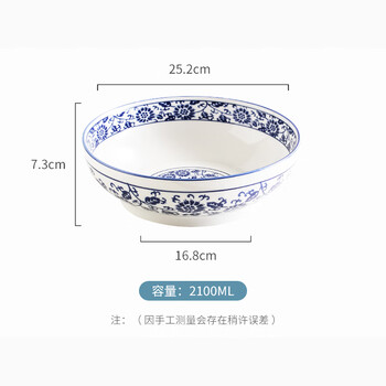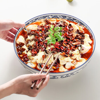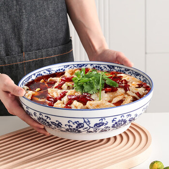 传旗 青花瓷大碗 10英寸陶瓷家用酸菜鱼盆面碗和面盆陶瓷盆