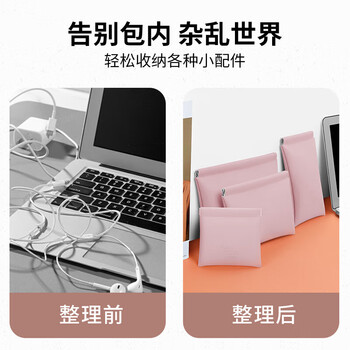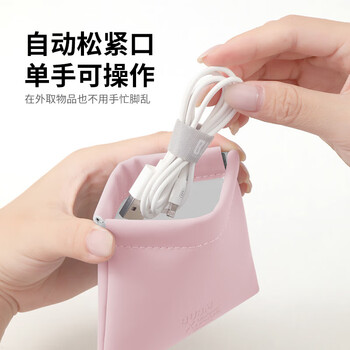 必优美 数码收纳包便携式自动闭合紧口电源充电器无线鼠标移动硬盘U盘保护套 BM01241007少女粉