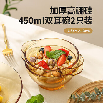 美厨(maxcook)高硼硅玻璃碗 耐热玻璃沙拉水果碗汤碗琥珀色450ml 2只装MCWA3140