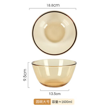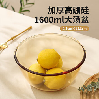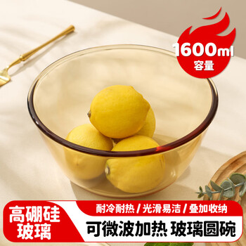 美厨(MAXCOOK)高硼硅玻璃碗 耐热玻璃沙拉水果汤碗泡面碗1600ml琥珀色 MCWA3201