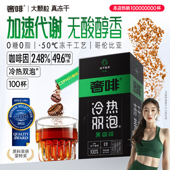 奢啡加速燃®绿标去酸醇香精品冻干双泡黑咖啡美式速溶0糖0脂2g*100杯