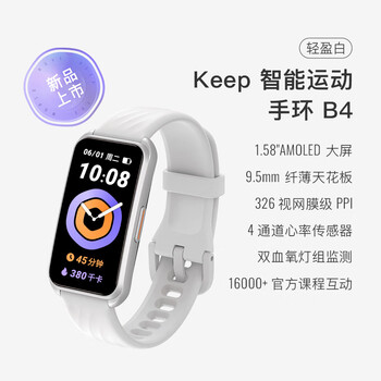 Keep智能运动手环 健身血氧监测手环 运动状态评估B4白 男女表