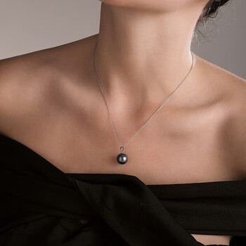大溪地经典款18K金黑珍珠吊坠 10-11mm正圆强光海水珍珠项链节日礼物