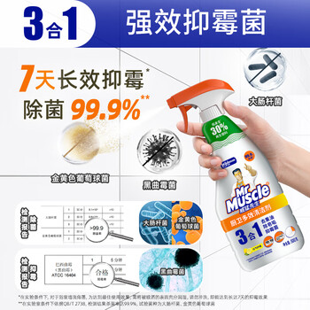 威猛先生(Mr Muscle)厨卫三合一去油污抑霉菌除皂垢多功能清洁剂 500g 元气柠檬