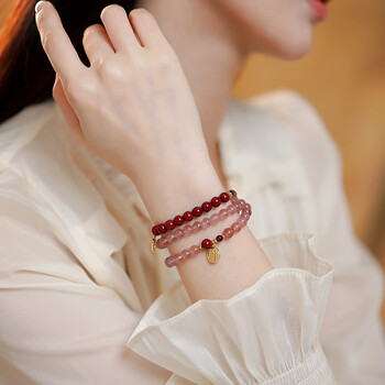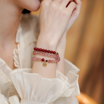 凤凰涅磐草莓晶手链女款串珠粉水晶朱砂手串转运珠桃花首饰生日礼物女
