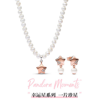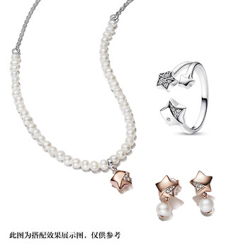 潘多拉(PANDORA)幸运星系列一片珍星耳钉玫瑰金色女生日礼物送女友