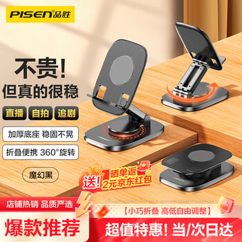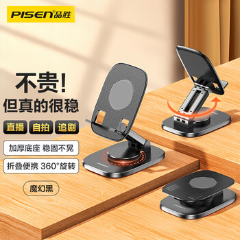 品胜 手机支架桌面 直播网课便携可折叠旋转 床头懒人支架 刷剧看视频手机平板通用支撑架 黑色
