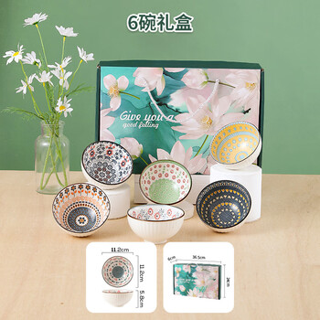 迪普尔 陶瓷碗套装家用中式釉下彩陶瓷米饭碗6只礼盒装年会礼品送礼