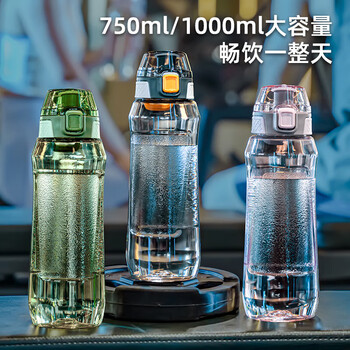 JEKO&JEKO运动水杯水壶夏季大容量塑料杯子男士Tritan学生水瓶 750mL透明灰