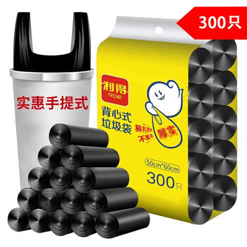 利得背心垃圾袋黑色50*60cm300只单面0.8丝家用办公大号手提塑料袋