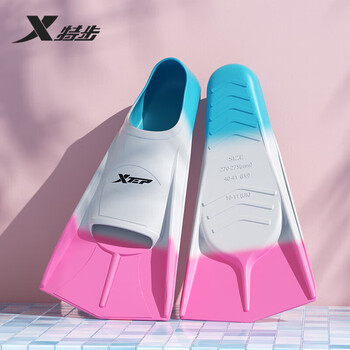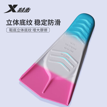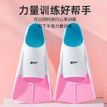 特步游泳脚蹼专业训练成人儿童潜水自由泳蛙泳速学训练装备 粉白三色