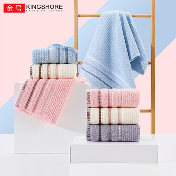 金号 纯棉A类加厚毛巾 10条装 条纹提缎吸水洗脸面巾100g/条 70*34cm