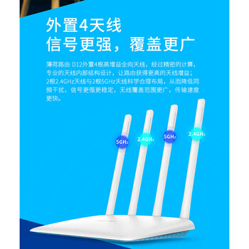 水星(MERCURY)薄荷路由D12 AC1200双频无线路由器 四天线智能5G 家用wifi稳定穿墙光纤适用