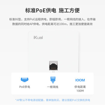 爱快(iKuai)千兆路由器 无线ap面板 AC1200 全屋wifi5 ac+ap 网络信号放大器 86型/插座/入墙式 poe供电 N7白