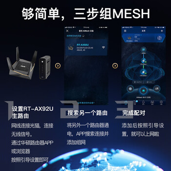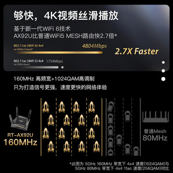 华硕(ASUS)RT-AX92U AX6100M三频千兆WIFI无线路由器|大户型分布式|全屋覆盖WiFi6|免费上门安装