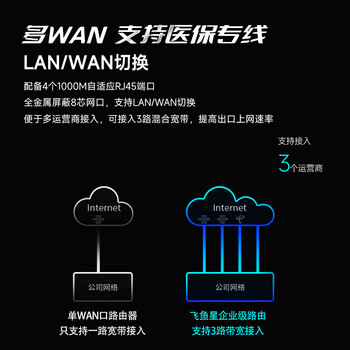 飞鱼星5G双频千兆无线路由器3000M无线企业商用高速路由 wifi6穿墙精钢铁壳 多WAN支持医保专线AX1800