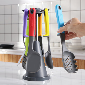 厨具底座*1,汤勺*1, 漏勺*1 ,平铲*1,挑针*1,夹仔*1,小平铲*1,油刷*1