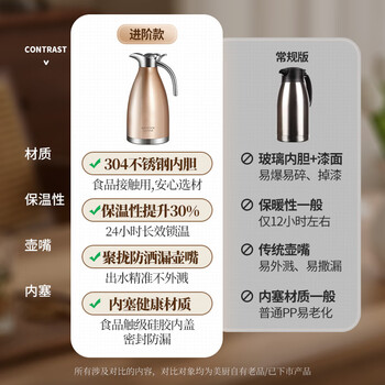 美厨(maxcook)保温壶 家用红色暖水壶结婚新年304不锈钢真空热开水瓶大容量2L