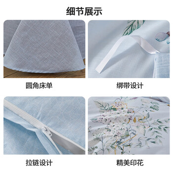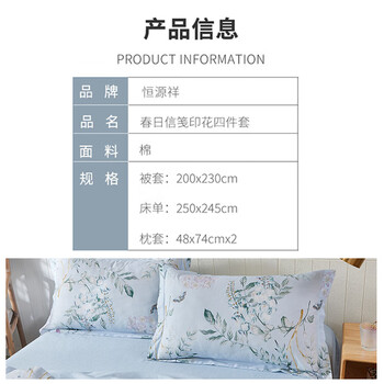 恒源祥全棉四件套100%纯棉21支竹节棉床单被套罩床单款套件四季床上用品 春日信笺200*230cm