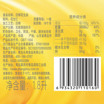 第一坊冷榨花生油礼盒1.8L*2/盒*1