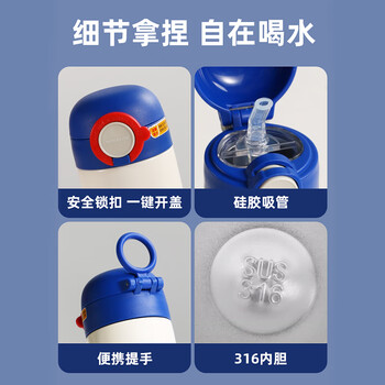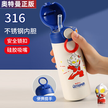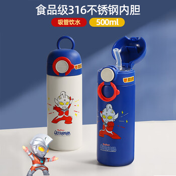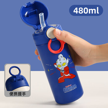 Angelamiao儿童保温杯带吸管儿童水杯子316不锈钢学生便携保温壶480ML奥特曼