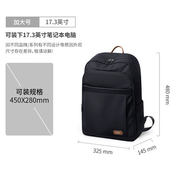 高尔夫(GOLF)双肩包男士旅行背包男17.3英寸电脑学生书包休闲背包女 黑色加大